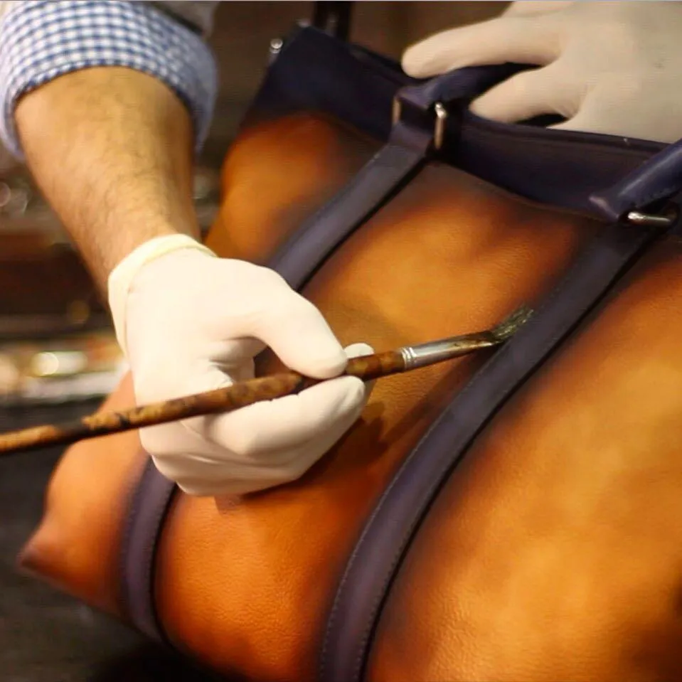 Custom-made - Every bag is individually finished: no two are exactly the same. These finishes are labour intensive, sometimes taking 8-12 hours of dedicated work (as seen in similar shoes that use Anticatura or burnishing from Spanish makers).